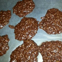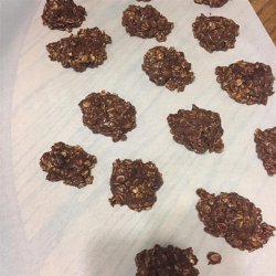 4Add peanut butter; stir to blend. Add oats, peanuts and vanilla; stir to mix well. Quickly drop mixture by heaping teaspoons onto wax paper or foil. Cool completely. Store in cool, dry place.