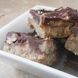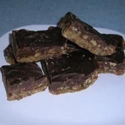 3Bake in 350 degrees F (175 degrees C) oven 18 to 20 minutes or until entire surface is bubbly. Remove from oven; immediately sprinkle with chocolate pieces. Let stand 2 to 3 minutes to allow chocolate to melt; use knife to swirl chocolate slightly. Cool completely in pan on wire rack. Use sharp knife to cut into 48 bars.