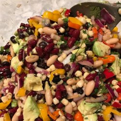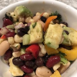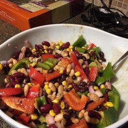 1In a large bowl, combine beans, bell peppers, frozen corn, and red onion.