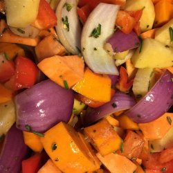 "A casserole dish of seasonal vegetables that is so easy to prepare. It can be made a day ahead - just reheat before serving. Lemon juice can be substituted for balsamic vinegar, and you can use baking potatoes if you don't have any Yukon Golds on hand."