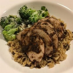 1Dissolve steak seasoning in balsamic vinegar, then stir in olive oil. Place pork into a resealable plastic bag and pour marinade overtop. Squeeze out air and seal bag; marinate 2 hours to overnight.