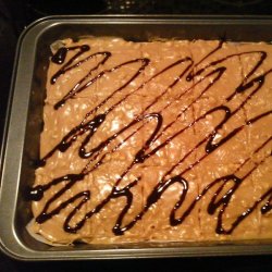 4While the cake bakes, place 2/3 cup sugar, evaporated milk, and butter in a saucepan. Bring to a boil, stirring constantly. Cook stirring for 2 minutes. Remove from heat and stir in the peanut butter, marshmallows and vanilla until marshmallows are melted and the mixture is smooth.
