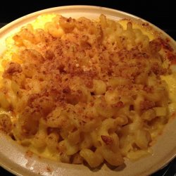 3Melt butter or margarine in a skillet over medium heat. Add breadcrumbs and brown. Spread over the macaroni and cheese to cover. Sprinkle with a little paprika.