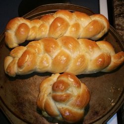 5Punch again, and form into three parts. Form each part into a 20-inch roll. Braid rolls on a large, greased cookie sheet. Cover and let rise until doubled.
