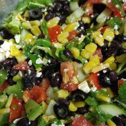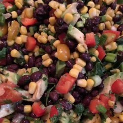2In a salad bowl, combine beans, corn, avocado, bell pepper, tomatoes, green onions, and cilantro. Shake lime dressing, and pour it over the salad. Stir salad to coat vegetables and beans with dressing, and serve.