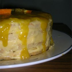 3Bake in preheated oven for 20 to 30 minutes. Allow cake layers to cool, then split each layer in half horizontally. Put the 4 cake layers together with about 1/3 cup of filling spread between each layer. Spread sides (not top) of cake with remaining filling. Refrigerate. Spread cooled glaze over top of cake and garnish with curls of orange peel. Store cake in refrigerator.