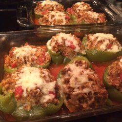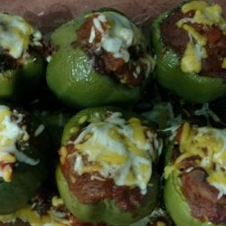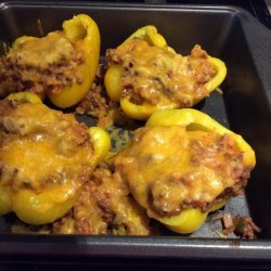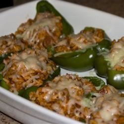 4In a bowl, mix the browned beef, cooked rice, 1 can tomato sauce, Worcestershire sauce, garlic powder, onion powder, salt, and pepper. Spoon an equal amount of the mixture into each hollowed pepper. Mix the remaining tomato sauce and Italian seasoning in a bowl, and pour over the stuffed peppers.