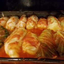 2In large bowl, combine 1 cup cooked rice, egg, milk, onion, ground beef, salt, and pepper. Place about 1/4 cup of meat mixture in center of each cabbage leaf, and roll up, tucking in ends. Place rolls in slow cooker.