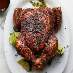 2In a small bowl, combine the lime juice, rum, and brown sugar; set aside. Mix together the cayenne pepper, clove, cinnamon, ginger, pepper, salt, and thyme leaves. Brush the chicken with oil, then coat with the spice mixture.
