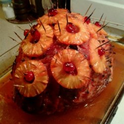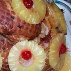 "A classic baked ham with a simple but tasty sweet brown sugar and pineapple glaze. This main dish will receive applause for its beautiful presentation as well as the irresistible flavor. You will definitely want to have some leftovers!"