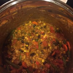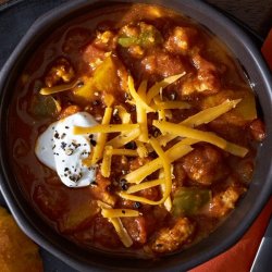 1Heat the oil in a large skillet over medium heat, and saute the onion, green bell pepper, yellow bell pepper, and garlic until tender. Stir in the turkey, and cook until evenly brown. Drain, and mix in tomatoes and pumpkin. Season with chili powder, pepper, and salt. Reduce heat to low, cover, and simmer 20 minutes. Serve topped with Cheddar cheese and sour cream.
