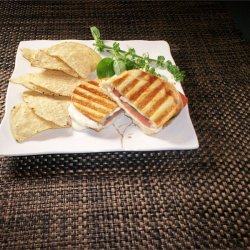 3Place sandwich in preheated skillet; top with another heavy skillet to press. Cook until bread is toasted and golden, about 3 minutes. Flip sandwich; top with skillet. Cook second side until toasted, about an additional 2 minutes.