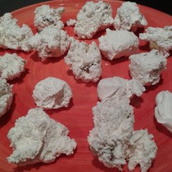 2Beat egg whites in 1-1/2-quart bowl until stiff peaks form. Continue to beat while pouring hot syrup in a thin stream into egg whites. Add vanilla; beat until mixture holds its shape and becomes slightly dull. (Mixture may become too stiff for electric mixer). Fold in nuts (if you choose).