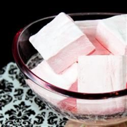 4Pour the hot sugar mixture into the gelatin mixture and beat on high for 12 minutes with electric mixer, until the mixture is fluffy and forms stiff peaks. Add vanilla and peppermint extracts, and beat just until blended.