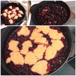 3In a separate bowl, dissolve the cornstarch in cold water. Mix in remaining 1 cup sugar, lemon juice, and blackberries. Transfer to a cast iron skillet, and bring to a boil, stirring frequently. Drop dough into the skillet by spoonfuls. Place skillet on the foil lined baking sheet.