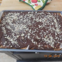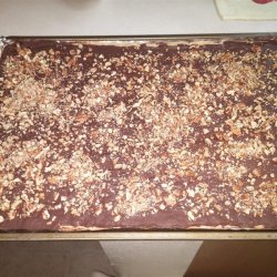 4Remove from oven and spread chocolate chips evenly over the top as they melt. Sprinkle with nuts, gently pressing into the melted chocolate. Cool until chocolate has hardened, and break into pieces. Store in refrigerator until ready to serve. Allow to cool, and break into pieces. Refrigerate until ready to serve.