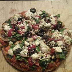 "This is great as a party appetizer or a full meal. Tasty, full of flavor and good for you. The crunchy crust is what I really like! You can play with the veggie toppings and cheeses for a great meal that is fast and delicious! Our favorite quick meal!"