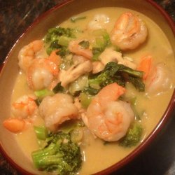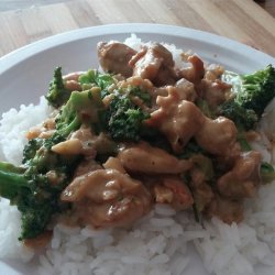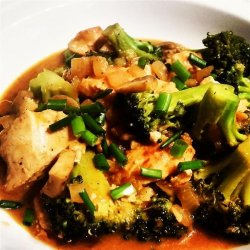 3Stir onion and curry powder into hot oil in skillet; cook 2 minutes. Stir in broccoli; stir-fry 3 minutes. Add coconut milk mixture and bring to a boil. Reduce heat to medium and simmer sauce and vegetables for 3 minutes. Return chicken to skillet; cover and cook until chicken has heated through and vegetables are tender, about 3 minutes.