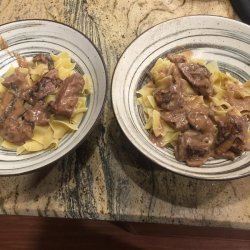 4While beef tips are baking, bring a large pot of lightly salted water to a boil. Add pasta and cook for 8 to 10 minutes or until al dente; drain. Serve beef tips and sauce over noodles.