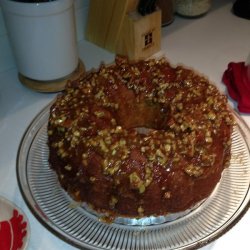 6Cool cake in pan for 15 to 20 minutes, then invert cake onto serving platter. Allow cake to cool completely before drizzling the remaining half of the pecan topping over the cake.