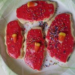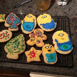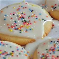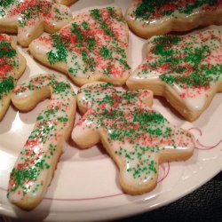 "Shiny icing my mom loves to put on shaped sugar cookies. We decorate cookies around Halloween and Christmas; it's a great family tradition! Color the frosting with food coloring to your desired shade."