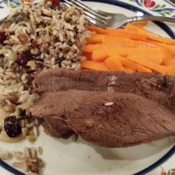 4While the goose is roasting, place the neck, heart, and gizzard in a saucepan with water. Let simmer gently, partially covered, for several hours, until reduced to slightly less than 2 cups. Season the broth to taste with salt.