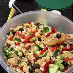 "This Pasta salad is a nutritious and light summer meal or side dish. My 4 yr old loves the veggies in this. I regularly use up grilled leftovers (chicken and veggies) in this salad."