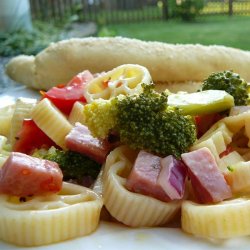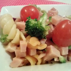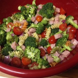 3Add ham, broccoli, and onion to the pasta. Toss lightly with dressing to coat evenly. Cover, and refrigerate at least 2 hours. Garnish with tomatoes.