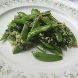 "Simple and quick to prepare. Sugar snap peas are quickly fried with green onion and garlic, and tossed with fresh mint leaves. Wonderful use for spring garden vegetables. Serve hot or at room temperature."