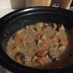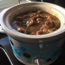 4Cover, and cook on High for 30 minutes. Reduce heat to Low, and cook for 6 hours, or until meat is fork tender. In a small bowl or cup, mix together 2 tablespoons flour with 1/4 cup warm water. Stir into stew, and cook uncovered for 15 minutes, or until thickened.