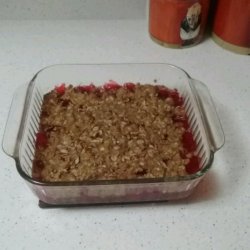 1Preheat oven to 350 degrees F (175 degrees C.) Lightly grease a 2 quart baking dish. Pour pie filling into the dish, and spread evenly.