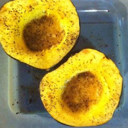 4Bake squash, cut-side up until tender, about 20 more minutes. Cool for about 5 minutes before serving.