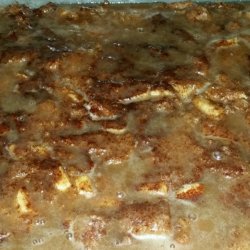 2In a large bowl, combine bread, raisins, and apples. In a small saucepan over medium heat, combine 1 cup brown sugar, 1 3/4 cups milk, and 1/4 cup margarine. Cook and stir until margarine is melted. Pour over bread mixture in bowl.