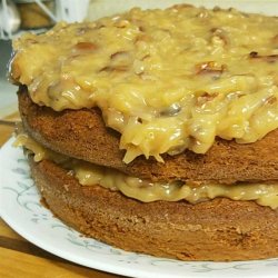 "German chocolate cake frosting that is cooked on top of the stove and put on warm cake while frosting is warm."
