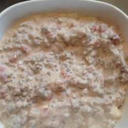 Mix tomatoes and cream cheese into the skillet. Stir and continue cooking the mixture over a medium heat until the cheese has melted.