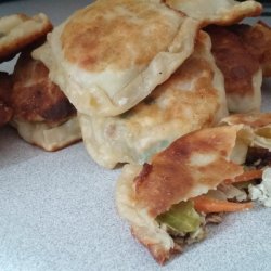 4In the preheated vegetable oil, cook gyoza approximately 1 minute per side, until lightly browned. Place water into skillet and reduce heat. Cover and allow gyoza to steam until the water is gone.