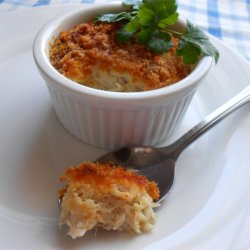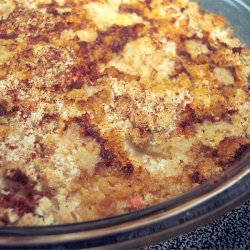 3In an 8" pie dish, spread mixture and lightly coat the entire dish with bread crumbs. Then sprinkle the top with paprika. Dot the dish with the butter.