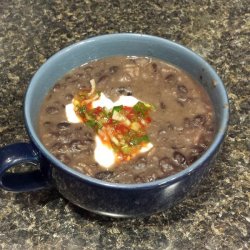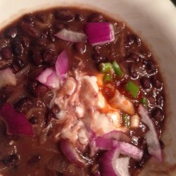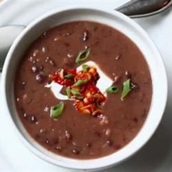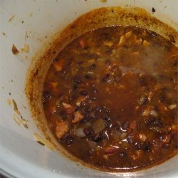 3Stir in garlic; cook for 2-3 minutes. Add chicken stock, turn heat to medium-high. Stir in oregano, cayenne and salt. Add black beans and water. Return to a simmer.