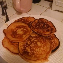3Preheat a lightly greased griddle over medium-high heat. Drop batter mixture onto the prepared griddle by heaping tablespoonfuls, and cook until golden brown, turning once with a spatula when the surface begins to bubble.