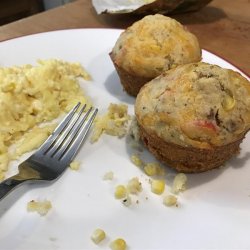 "Bell peppers, fresh corn kernels, Cheddar cheese, and pork sausage make delicious breakfast muffins. These would be great with a runny boiled (or steamed) egg tucked inside!"