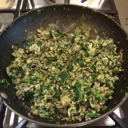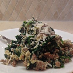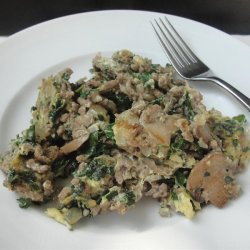 "This mammoth plate of food features three eggs, a half-pound of meat, and more than enough spinach. Apparently a late-night patron requested his spinach omelet include a hamburger patty, and this is what happened. In respect to good ol' made-up 'Joe,' I've kept the original portions, so feel free to share with a friend or three. This version is mostly meat and spinach, but if you want something closer to a classic scramble, then cut the beef and spinach amounts in half. This is how most restaurants that copy the recipe do it!"