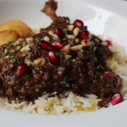 "A savory stew featuring duck, pomegranate, and walnuts, which is every bit as exotic as it sounds. This is my interpretation of the ancient classic. I'm assuming like most similar recipes, every household has their own version, and this kind of thing can easily be tailored to your tastes."