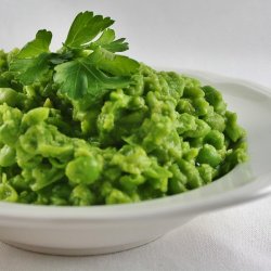 "Mushy Peas are a great side dish with fried cod or salmon. Note: You can add more liquid (water or cream) depending how mushy you want your peas. Use low fat milk if you're calorie-conscious."