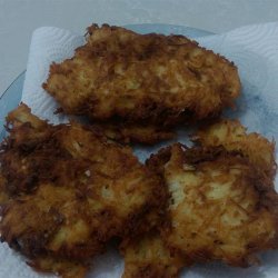 "This is a traditional potato pancake recipe, and is a wonderful comfort food. Serve with applesauce and sour cream for a light dinner, or with roast chicken for a hearty winter meal. You can use more flour if the mixture seems too wet."
