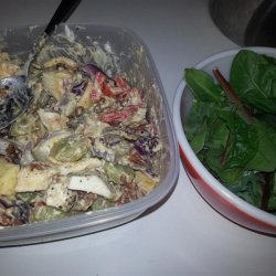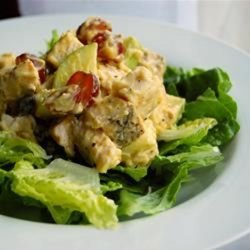 "A healthy and tasty chicken salad with a fruity twist - great on a croissant or in a honey pita. The salad is best if eaten the day after preparation. This allows the ingredients time to mingle, giving a fuller flavor."
