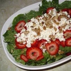 "This unusual combination of strawberries, feta cheese, toasted almonds and romaine lettuce in a sweet and tangy dressing is sure to please your guests. A guaranteed pleaser for any potluck or BBQ meal!!!"