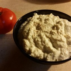 "I whipped this up the other night after a fierce craving for a gyro struck me and I was finding a lot of recipes that weren't quite what I was looking for. I wanted a creamier version of tzatziki. I put it on a tortilla with shredded chicken, cheddar, green leaf lettuce and lots of tomatoes and feta. It was sooo good I was eating it by the spoonful! You can play around with adding a little more mayo or sour cream, as my measurements may not have been exact."