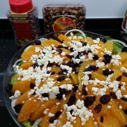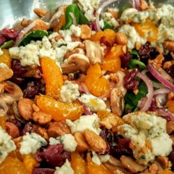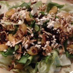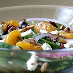 "A spur-of-the-moment creation when I wanted something with a great flavor punch and lots of color, plus quick to prepare---this one fills the bill, with baby spinach and colorful cranberries and mandarin oranges, plus the crunch of sweetened almonds and the pungent feta cheese---a new favorite at our house! You may substitute blue cheese for the feta and any kind of sweetened pecans or walnuts, if desired, for the almonds."