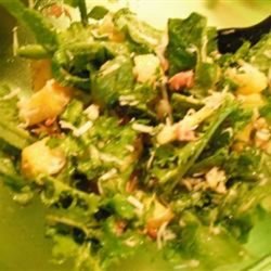 "An easy salad to make with a bag of salad greens, pineapple, bacon bits, nuts and toasted coconut. Use fresh pineapple, if you can, and substitute toasted almonds for the macadamia nuts, if desired."