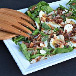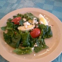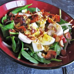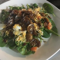 "A classic steakhouse-style spinach salad with the absolute best warm bacon-mustard dressing I've ever had! Looks and tastes like a lot of work, but can be prepared in no time! This salad can easily be converted to a main dish salad by adding strips of grilled chicken breast."